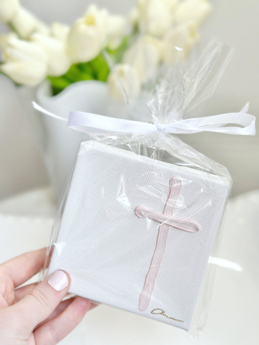 Pink Scalloped Cross Acrylic Easter Basket Charm
