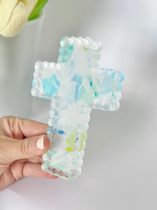 Scalloped Acrylic Cross Blue Abstract