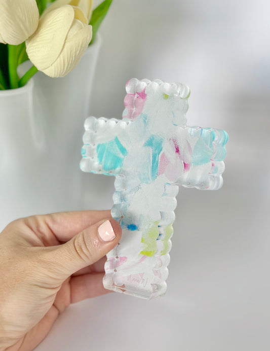 Scalloped Acrylic Cross Pink Abstract
